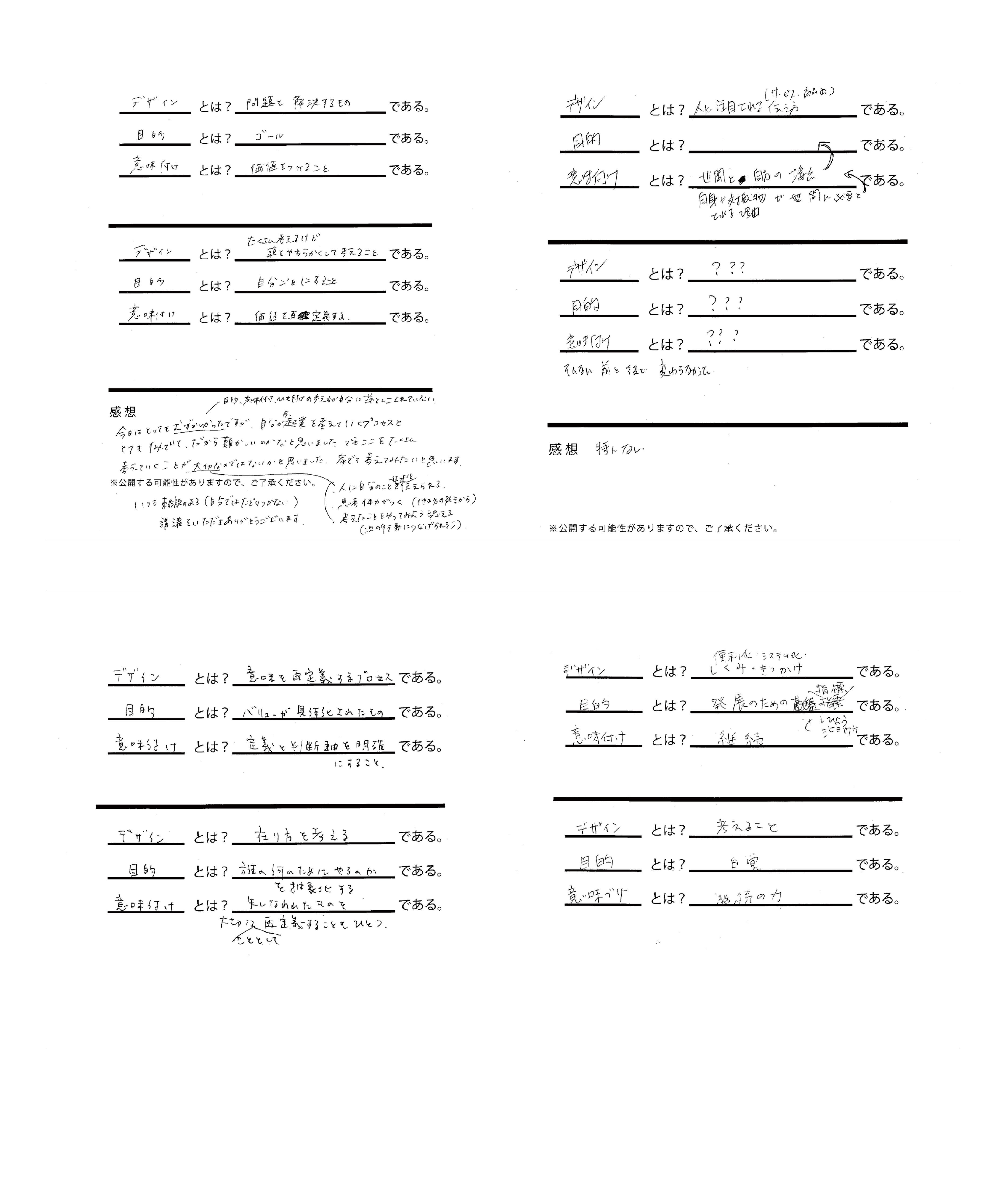 - 今までで一番難しくて質問まで至らなかった。目的設定とすり合わせるのが難しいなと思った。