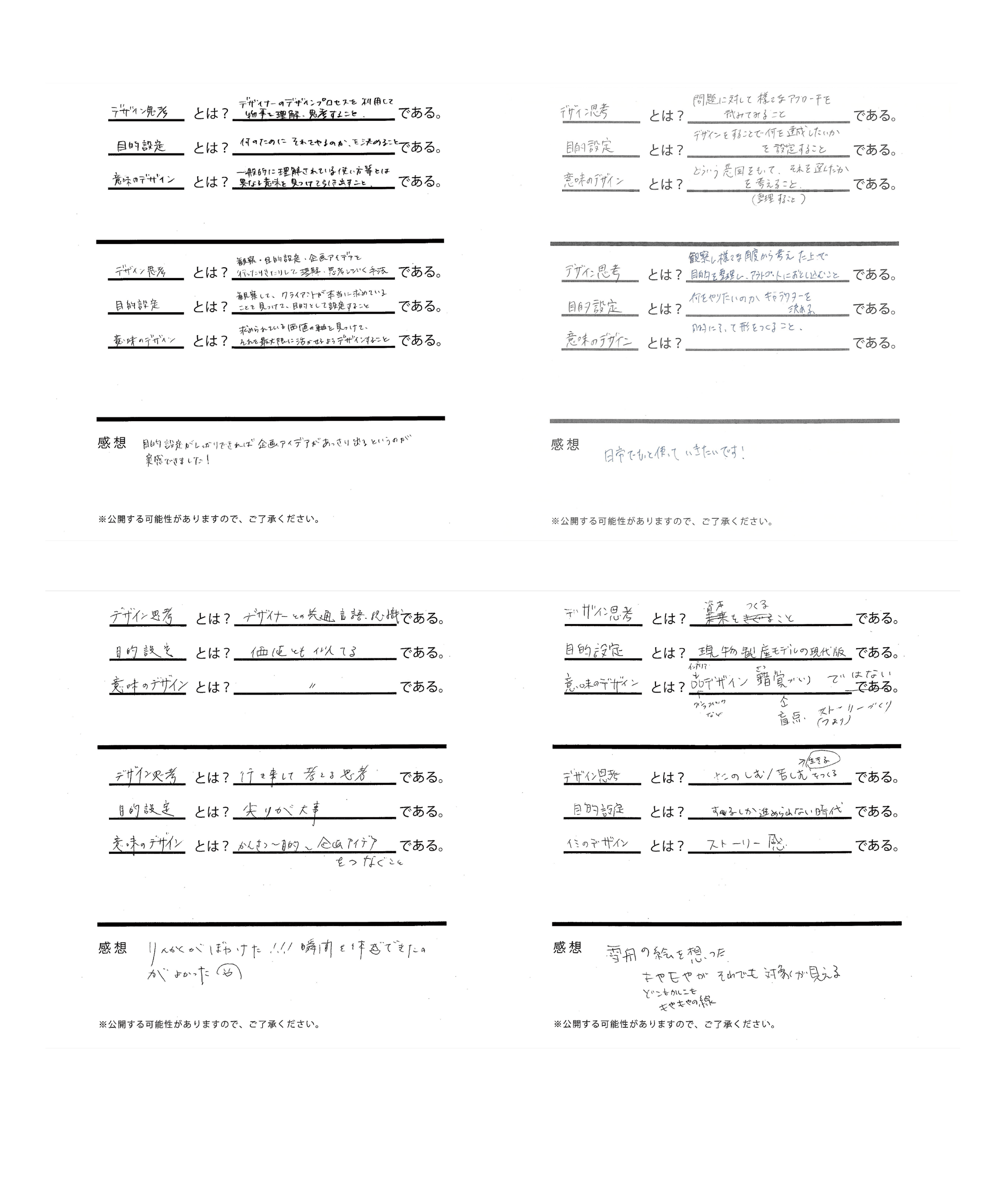 前回と同じテーマで、今回はグループでのワークにじっくり取り組んでもらい、デザインを深めてもらいました。